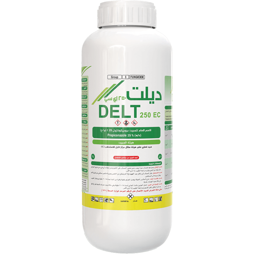 المجموعة الكيماوية: TRIAZOLE - الخصـــائص: مبيد فطري جهازي يحتوي على المادة الفعالة بروبيكونازول ذات المفعول الوقائي والعلاجي والاستئصالي لماكفحة العديد من الأمراض الفطرية مثل: ,Helminthosporium ,Cercospora ,Erysiphe ,Fusarium ,Puccinia ,Septoria ,Podosphaera ,Mycosphaerella ,Monilia ,Rhizoctonia Sphaerotheca.